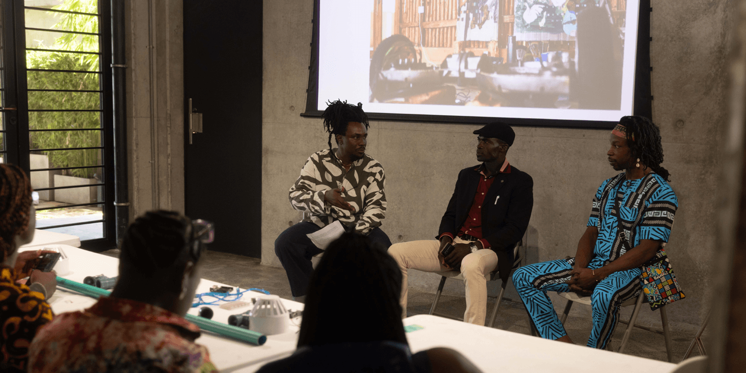 The afternoon opened with a welcome address from Residency and Project Manager Adekunle Adeoboye, who situated G.A.S. within broader conversations on local innovation. He offered an overview of G.A.S. Foundation’s mission and its role within the local cultural and ecological context. Jonathan Chambalin followed with an introduction to his practice, sharing insights from his Food to Power series, a project that explores decentralized energy generation using woven plant fibers derived from ewedu stalks. His presentation reflected on how industrialisation and rapid urban growth continue to reshape the ways communities engage with food systems and energy production.