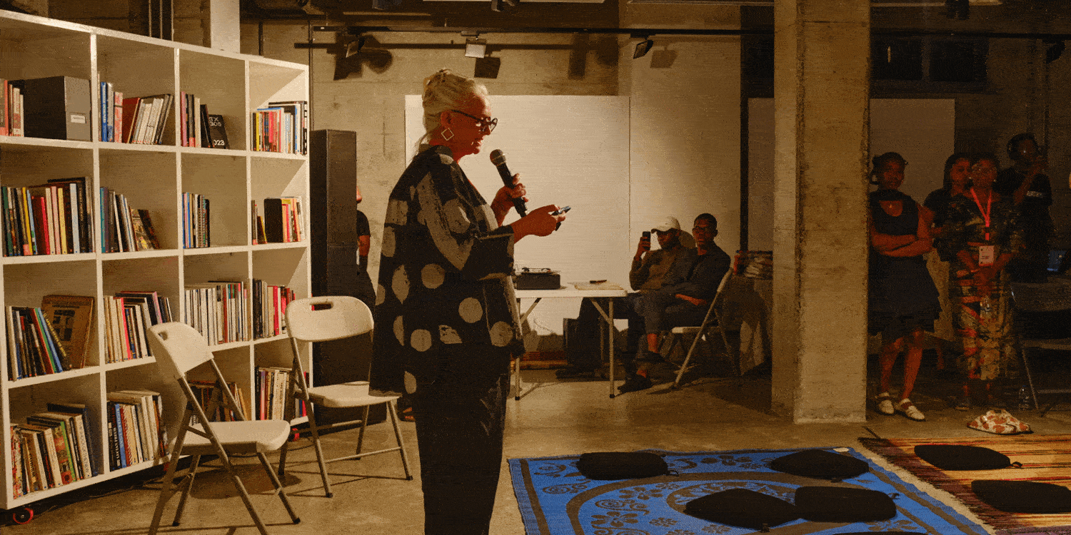 Day One concluded with Rematriating the Archive, chaired by Professor and Director at Spelman College Dr. Cheryl Finley in conversation with storyteller Sylvia Arthur, Director-General of the Centre for Black and African Arts & Civilisation Hon. Aisha Adamu Augie, and independent curator Dr. Jareh Das. The panel examined rematriation as conceptualized by Indigenous scholar Dr. Robin Gray, framing the return of cultural property and knowledge to rightful custodians while foregrounding care, orality, embodiment, kinship, and collective memory. The evening continued at G.A.S. Lagos with a satellite event: the screening of the work-in-progress film Sister, Sister by filmmaker Olukemi Lijadu, tracing the life and legacy of her aunts, the Lijadu Sisters, twin pioneers of Afro-psychedelic funk in 1970s–’80s Nigeria. A discussion with Olukemi, moderated by artist and G.A.S. trustee Temitayo Ogunbiyi followed, examining the themes and thoughts behind the film. Naima Hassan also launched the G.A.S. Reading Room, offering encounters with publications connecting African and Afro-diasporic art and cultural ecologies.