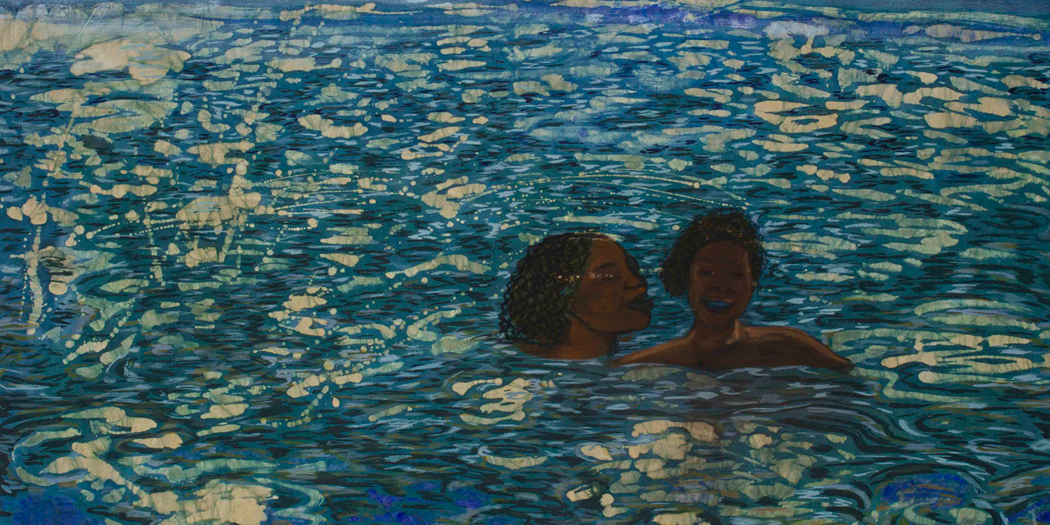 My practice is an exploration into materiality and the intimacy. Constructing a spacetime of care and tenderness, a location in which my figures can be away from the harsh realities of our world and in which relations are tethered through warmth and tactility. Central to my practice is Nigerian textile craft. Combining the process of resistance dyeing methods influenced by Adire cloth making with figurative mixed media painting to create scenes encapsulating joy and tenderness. I use batik and tie-dye techniques to form intricate lineal resistance patterns elevating my backgrounds and enhancing the figures. I'm interested in the vibrancy and contrast of putting different colours and materials in conversation with another.