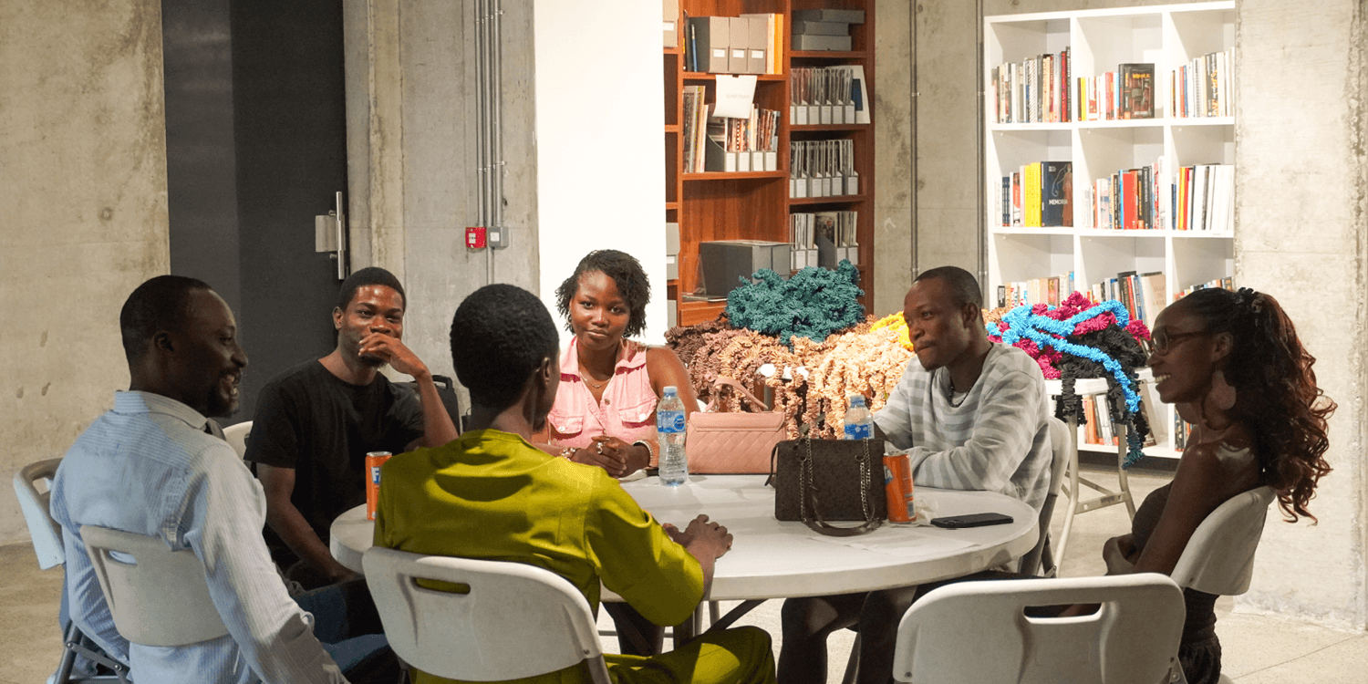The session unfolded over approximately two hours and began with brief introductions, offering participants insight into Nduka’s practice and current research direction. This opening set the tone for the gathering, which moved organically into open conversation, allowing connections to form through shared experiences, questions, and reflections on artistic practice. Participants engaged in one-on-one and small-group discussions, sharing ideas around practice, process, and navigating artistic growth across different geographies.