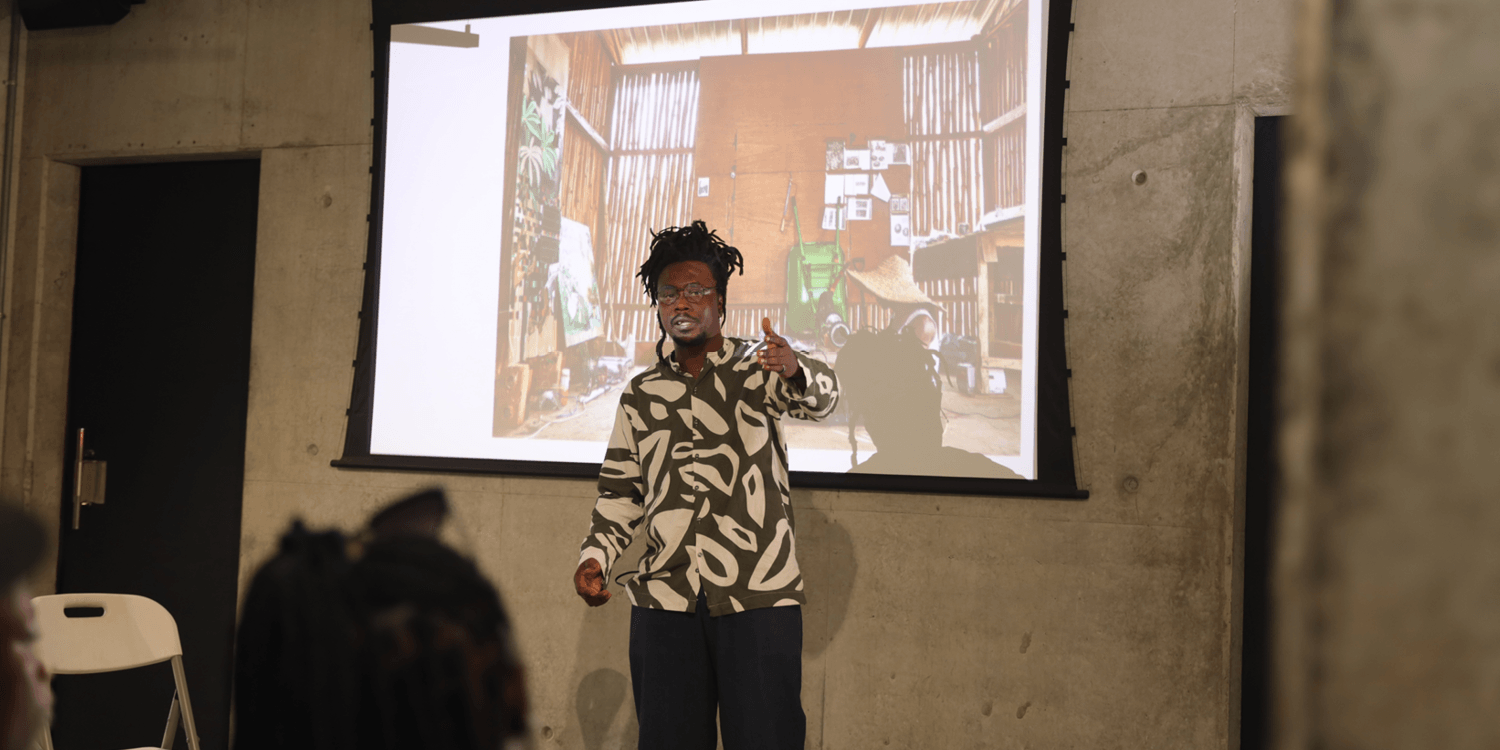 The afternoon opened with a welcome address from Residency and Project Manager Adekunle Adeoboye, who situated G.A.S. within broader conversations on local innovation. He offered an overview of G.A.S. Foundation’s mission and its role within the local cultural and ecological context. Jonathan Chambalin followed with an introduction to his practice, sharing insights from his Food to Power series, a project that explores decentralized energy generation using woven plant fibers derived from ewedu stalks. His presentation reflected on how industrialisation and rapid urban growth continue to reshape the ways communities engage with food systems and energy production.