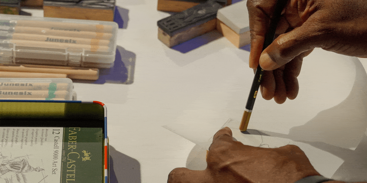 Each participant was then invited to sketch, carve, and print a simple image that held personal meaning to them, it could either be one connected to a memory, person, or moment. Working closely with the group, Daniel offered hands-on guidance, recognising that for many participants, this was their first experience with relief printing and that learning through doing was central to the workshop.
